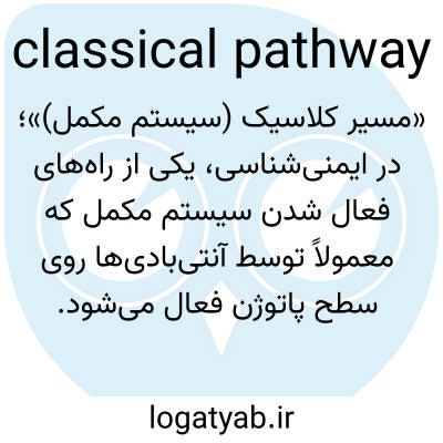«مسیر کلاسیک (سیستم مکمل)»؛ در ایمنی‌شناسی، یکی از راه‌های فعال شدن سیستم مکمل که معمولاً توسط آنتی‌بادی‌ها روی سطح پاتوژن فعال می‌شود.