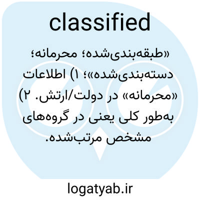 «طبقه‌بندی‌شده؛ محرمانه؛ دسته‌بندی‌شده»؛ ۱) اطلاعات «محرمانه» در دولت/ارتش. ۲) به‌طور کلی یعنی در گروه‌های مشخص مرتب‌شده.