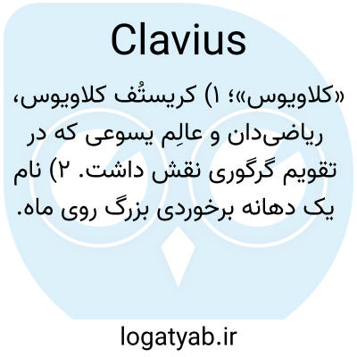 «کلاویوس»؛ ۱) کریستُف کلاویوس، ریاضی‌دان و عالِم یسوعی که در تقویم گرگوری نقش داشت. ۲) نام یک دهانه برخوردی بزرگ روی ماه.