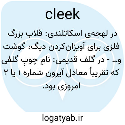 📌 عمدتاً اسکاتلندی، قلاب بزرگی، مخصوصاً قلابی که به دیوارهای داخلی خانه برای نگه داشتن لباس، قابلمه یا غذا وصل میشود.