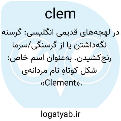 در لهجه‌های قدیمی انگلیسی: گرسنه نگه‌داشتن یا از گرسنگی/سرما رنج‌کشیدن. به‌عنوان اسم خاص: شکل کوتاهِ نام مردانه‌ی «Clement».