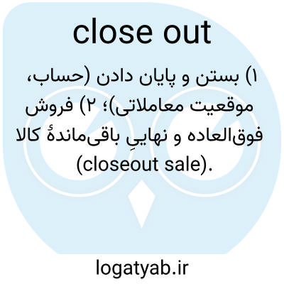۱) بستن و پایان دادن (حساب، موقعیت معاملاتی)؛ ۲) فروش فوق‌العاده و نهاییِ باقی‌ماندهٔ کالا (closeout sale).