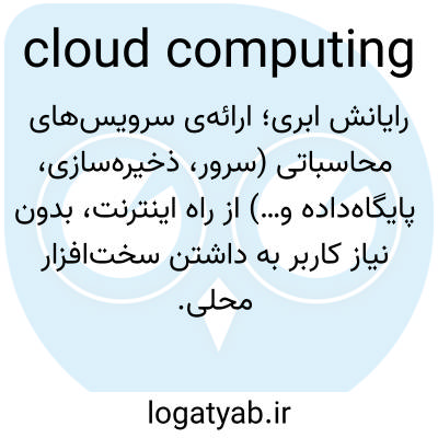 رایانش ابری؛ ارائه‌ی سرویس‌های محاسباتی (سرور، ذخیره‌سازی، پایگاه‌داده و…) از راه اینترنت، بدون نیاز کاربر به داشتن سخت‌افزار محلی.