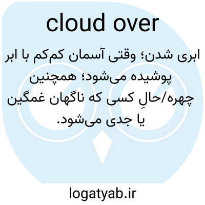 📌 پوشیده از ابر شدن، مانند «الان هوا ابری است، بنابراین ممکن است به زودی باران ببارد»، یا «هوا خیلی گرم و آفتابی بود، اما بعد از مدتی آسمان ابری شد و ما به بیرون رفتیم.» [اواسط دهه ۱۷۰۰ میلادی]