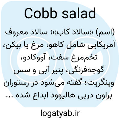 (اسم) «سالاد کاب»؛ سالاد معروف آمریکایی شامل کاهو، مرغ یا بیکن، تخم‌مرغ سفت، آووکادو، گوجه‌فرنگی، پنیر آبی و سس وینگریت؛ گفته می‌شود در رستوران براون دربی هالیوود ابداع شده است.