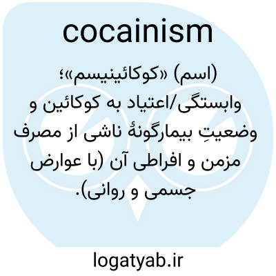 (اسم) «کوکائینیسم»؛ وابستگی/اعتیاد به کوکائین و وضعیتِ بیمارگونهٔ ناشی از مصرف مزمن و افراطی آن (با عوارض جسمی و روانی).
