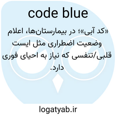 «کد آبی»؛ در بیمارستان‌ها، اعلام وضعیت اضطراری مثل ایست قلبی/تنفسی که نیاز به احیای فوری دارد.