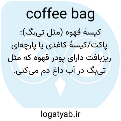 کیسهٔ قهوه (مثل تی‌بگ): پاکت/کیسهٔ کاغذی یا پارچه‌ای ریزبافت دارای پودر قهوه که مثل تی‌بگ در آب داغ دم می‌کنی.