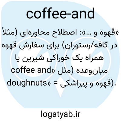 «قهوه و …»: اصطلاح محاوره‌ای (مثلاً در کافه/رستوران) برای سفارش قهوه همراه یک خوراکی شیرین یا میان‌وعده (مثل «coffee and doughnuts» = قهوه و پیراشکی).
