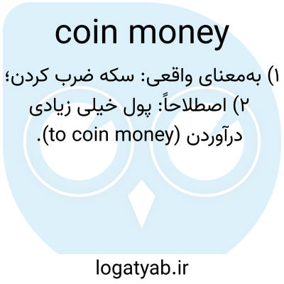 📌 همچنین، ضرب پول. به راحتی یا خیلی سریع پول زیادی به دست آوردن. به عنوان مثال، با انحصار در بازار، او میتوانست پول ضرب کند، یا این مشاوران املاک بسیار با انگیزه تقریباً آژانس را قادر به ضرب پول میکنند. این عبارت اغراقآمیز به اواسط دهه ۱۸۰۰ برمیگردد.