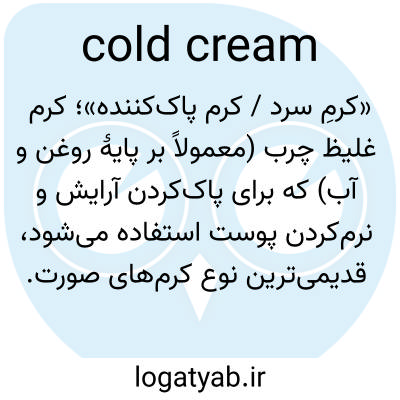 📌 یک ماده آرایشی کرمی، معمولاً با غلظت روغنی، که برای تمیز کردن یا تسکین پوست، به خصوص صورت و گردن، یا برای پاک کردن آرایش استفاده میشود.