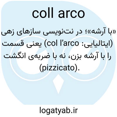 «با آرشه»؛ در نتنویسی سازهای زهی (ایتالیایی: col l’arco) یعنی قسمت را با آرشه بزن، نه با ضربهی انگشت (pizzicato).