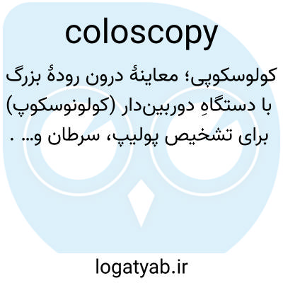 کولوسکوپی؛ معاینهٔ درون رودهٔ بزرگ با دستگاهِ دوربین‌دار (کولونوسکوپ) برای تشخیص پولیپ، سرطان و… .