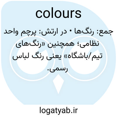 جمع: رنگ‌ها • در ارتش: پرچم واحد نظامی؛ همچنین «رنگ‌های تیم/باشگاه» یعنی رنگ لباس رسمی.