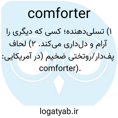 ۱) تسلی‌دهنده؛ کسی که دیگری را آرام و دل‌داری می‌کند. ۲) لحاف پف‌دار/روتختی ضخیم (در آمریکایی: comforter).