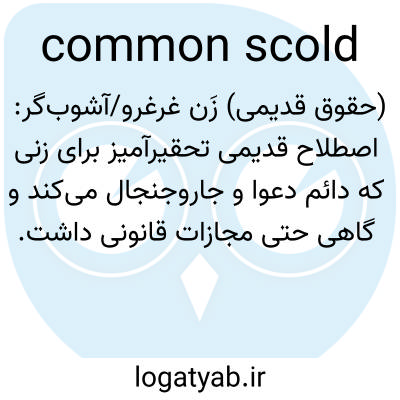 📌 (در اوایل حقوق عرفی) زنی که معمولاً بیادب و دعوا میکرد و رفتارش به عنوان مزاحمت عمومی قابل مجازات بود.