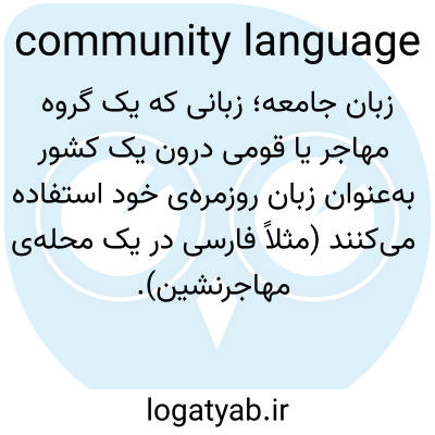 زبان جامعه؛ زبانی که یک گروه مهاجر یا قومی درون یک کشور به‌عنوان زبان روزمره‌ی خود استفاده می‌کنند (مثلاً فارسی در یک محله‌ی مهاجرنشین).