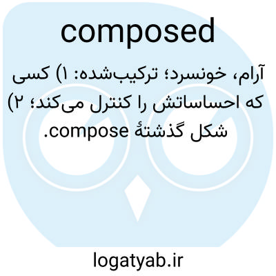 آرام، خونسرد؛ ترکیب‌شده: ۱) کسی که احساساتش را کنترل می‌کند؛ 2) شکل گذشتهٔ compose.