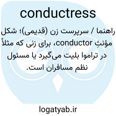 راهنما / سرپرست زن (قدیمی)؛ شکل مؤنثِ conductor، برای زنی که مثلاً در تراموا بلیت می‌گیرد یا مسئول نظم مسافران است.