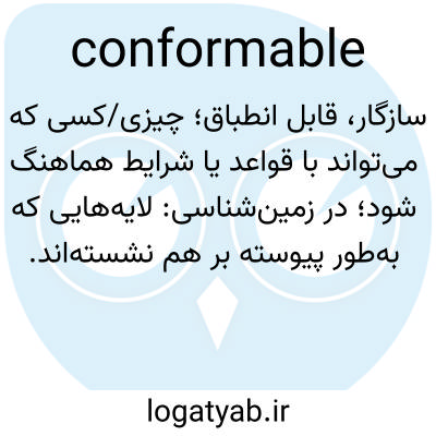 سازگار، قابل انطباق؛ چیزی/کسی که می‌تواند با قواعد یا شرایط هماهنگ شود؛ در زمین‌شناسی: لایه‌هایی که به‌طور پیوسته بر هم نشسته‌اند.