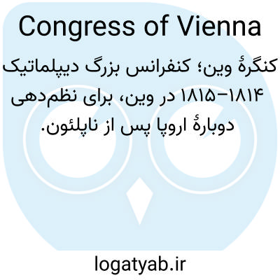 📌 کنفرانسی بینالمللی (۱۸۱۴-۱۸۱۵) که پس از تبعید ناپلئون به البا در وین برگزار شد و مترنیخ چهرهٔ مسلط آن بود، با هدف اسکان مجدد سرزمینها و بازگرداندن قدرت به سران تاجدار اروپا.