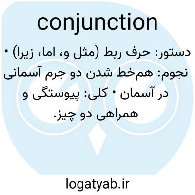 دستور: حرف ربط (مثل و، اما، زیرا) • نجوم: هم‌خط شدن دو جرم آسمانی در آسمان • کلی: پیوستگی و همراهی دو چیز.