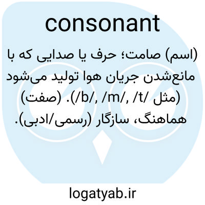 📌 (در تلفظ انگلیسی) صدایی گفتاری که با بستن، با یا بدون آزاد کردن (p، b؛ t، d؛ k، g)، منحرف کردن (m، n، ng) یا انسداد (f، v؛ s، z و غیره) جریان هوا از ریهها (مصوت) تولید میشود.