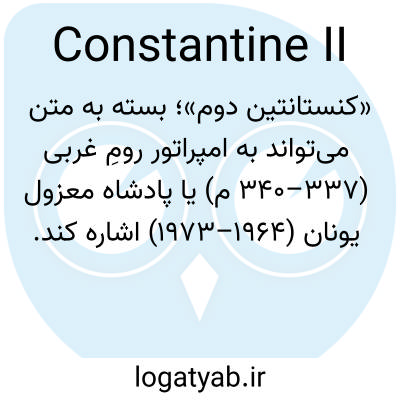 «کنستانتین دوم»؛ بسته به متن می‌تواند به امپراتور رومِ غربی (۳۳۷–۳۴۰ م) یا پادشاه معزول یونان (۱۹۶۴–۱۹۷۳) اشاره کند.