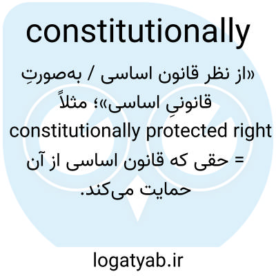 «از نظر قانون اساسی / به‌صورتِ قانونیِ اساسی»؛ مثلاً constitutionally protected right = حقی که قانون اساسی از آن حمایت می‌کند.