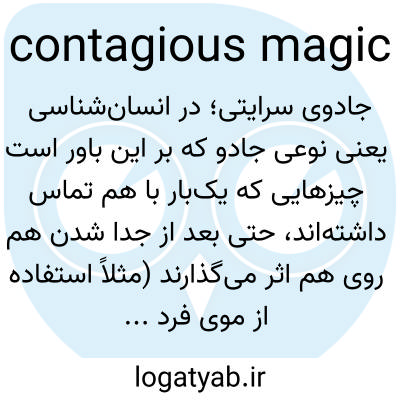 📌 جادویی که تلاش میکند از طریق چیزی که زمانی با فرد مرتبط بوده است، مانند پیراهنی که زمانی پوشیده یا ردپایی که روی شنها باقی مانده است، بر او تأثیر بگذارد؛ شاخهای از جادوی همدلانه مبتنی بر این باور که چیزهایی که زمانی با هم در تماس بودهاند، به نوعی برای همیشه همینطور باقی میمانند، هرچند که ممکن است بعداً از نظر فیزیکی از هم جدا شوند.