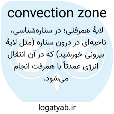 📌 ناحیهای از پلاسمای آشفته بین هسته ستاره و فوتوسفر مرئی آن در سطح، که از طریق آن انرژی از طریق همرفت منتقل میشود. در منطقه همرفت، پلاسمای داغ بالا میرود، با نزدیک شدن به سطح سرد میشود و برای گرم شدن و دوباره بالا آمدن، پایین میآید.