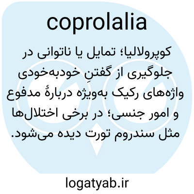 کوپرولالیا؛ تمایل یا ناتوانی در جلوگیری از گفتنِ خودبه‌خودی واژه‌های رکیک به‌ویژه دربارهٔ مدفوع و امور جنسی؛ در برخی اختلال‌ها مثل سندروم تورت دیده می‌شود.
