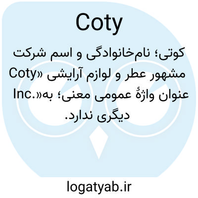 کوتی؛ نام‌خانوادگی و اسم شرکت مشهور عطر و لوازم آرایشی «Coty Inc.»؛ به‌عنوان واژهٔ عمومی معنی دیگری ندارد.