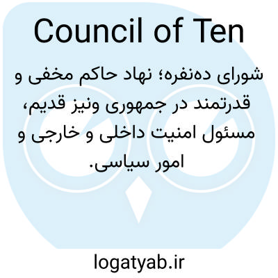 شورای ده‌نفره؛ نهاد حاکم مخفی و قدرتمند در جمهوری ونیز قدیم، مسئول امنیت داخلی و خارجی و امور سیاسی.