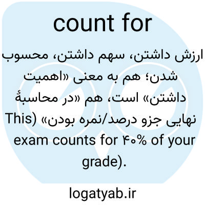 📌 اهمیت یا ارزش داشتن، مانند «آیا دوره طولانی تصدی او چیزی را به حساب نمیآورد؟» یا «آیا این مسابقات برای امتیازات کامپیوتر حساب میشود؟» این کاربرد، کلمه «شمارش» را به معنای «وارد شدن به یک محاسبه» به کار میبرد. [اواسط دهه ۱۸۰۰]