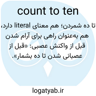 تا ده شمردن؛ هم معنای literal دارد، هم به‌عنوان راهی برای آرام شدن قبل از واکنش عصبی: «قبل از عصبانی شدن تا ده بشمار».