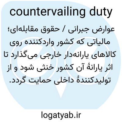 📌 عوارض وارداتی اضافی که توسط یک کشور بر واردات خاص وضع میشود، به ویژه برای جلوگیری از دامپینگ یا خنثی کردن یارانههای کشور صادرکننده