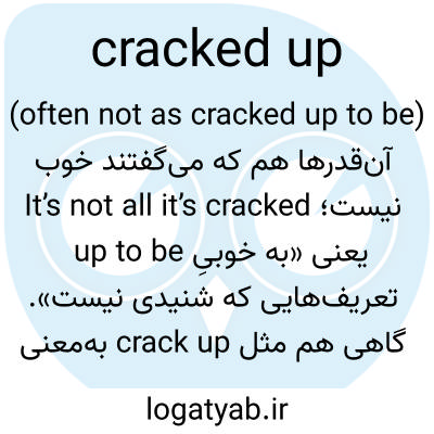 (often not as cracked up to be) آن‌قدرها هم که می‌گفتند خوب نیست؛ It’s not all it’s cracked up to be یعنی «به خوبیِ تعریف‌هایی که شنیدی نیست». گاهی هم مثل crack up به‌معنی از هم پاشیدن عصبی.