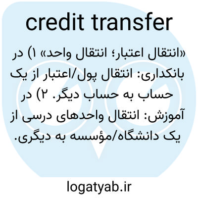 «انتقال اعتبار؛ انتقال واحد» ۱) در بانکداری: انتقال پول/اعتبار از یک حساب به حساب دیگر. ۲) در آموزش: انتقال واحدهای درسی از یک دانشگاه/مؤسسه به دیگری.