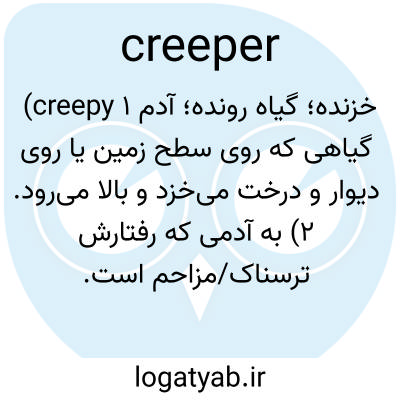خزنده؛ گیاه رونده؛ آدم creepy ۱) گیاهی که روی سطح زمین یا روی دیوار و درخت می‌خزد و بالا می‌رود. ۲) به آدمی که رفتارش ترسناک/مزاحم است.