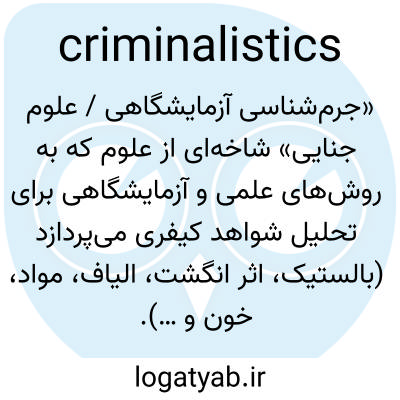 «جرم‌شناسی آزمایشگاهی / علوم جنایی» شاخه‌ای از علوم که به روش‌های علمی و آزمایشگاهی برای تحلیل شواهد کیفری می‌پردازد (بالستیک، اثر انگشت، الیاف، مواد، خون و …).