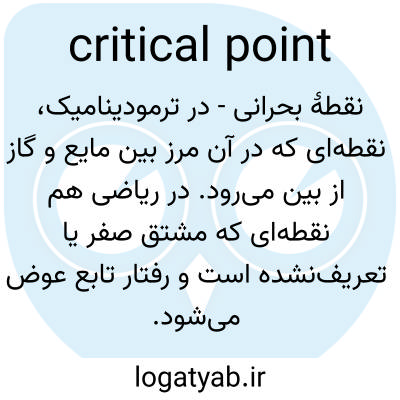 📌 فیزیک، نقطهای که در آن یک ماده در یک فاز، به عنوان مایع، چگالی، فشار و دمای یکسانی با ماده در فاز دیگر، به عنوان گاز، دارد.