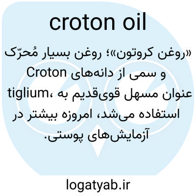 📌 روغنی به رنگ زرد مایل به قهوهای که از دانههای کروتون، Croton tiglium، گرفته میشود و یک ملین قوی و ضد التهاب است.