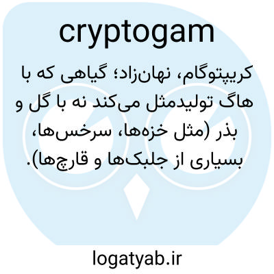 کریپتوگام، نهان‌زاد؛ گیاهی که با هاگ تولیدمثل می‌کند نه با گل و بذر (مثل خزه‌ها، سرخس‌ها، بسیاری از جلبک‌ها و قارچ‌ها).