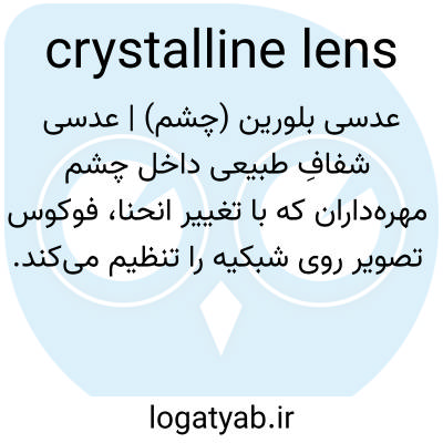📌 جسمی دوپهلو محدب و شفاف در چشم، واقع در پشت عنبیه، که نور تابیده شده را روی شبکیه متمرکز می‌کند.