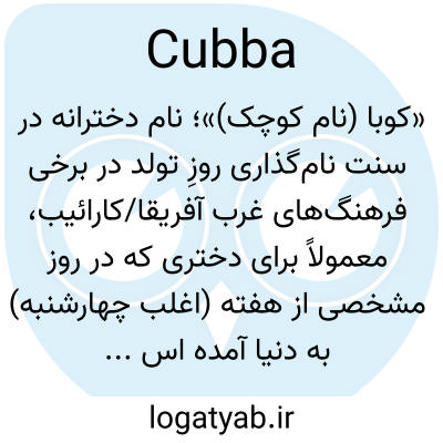 «کوبا (نام کوچک)»؛ نام دخترانه در سنت نام‌گذاری روزِ تولد در برخی فرهنگ‌های غرب آفریقا/کارائیب، معمولاً برای دختری که در روز مشخصی از هفته (اغلب چهارشنبه) به دنیا آمده است.