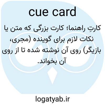 📌 کارت بزرگی، خارج از محدوده دوربین، که روی آن کلمات یا عباراتی با حروف بزرگ چاپ شده است تا گوینده یا اجراکننده آن را بخواند یا به عنوان کمک حافظه در طول برنامه از آن استفاده کند.