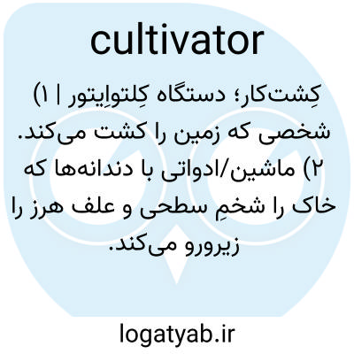 کِشت‌کار؛ دستگاه کِلتواِیتور | ۱) شخصی که زمین را کشت می‌کند. ۲) ماشین/ادواتی با دندانه‌ها که خاک را شخمِ سطحی و علف هرز را زیرورو می‌کند.