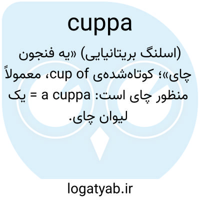 (اسلنگ بریتانیایی) «یه فنجون چای»؛ کوتاه‌شده‌ی cup of، معمولاً منظور چای است: a cuppa = یک لیوان چای.