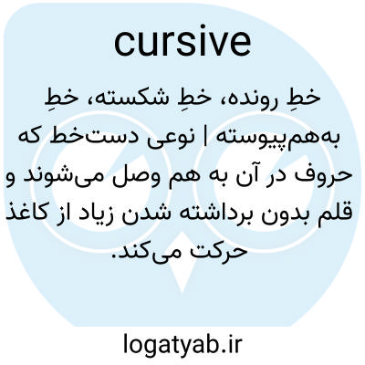 خطِ رونده، خطِ شکسته، خطِ به‌هم‌پیوسته | نوعی دست‌خط که حروف در آن به هم وصل می‌شوند و قلم بدون برداشته شدن زیاد از کاغذ حرکت می‌کند.